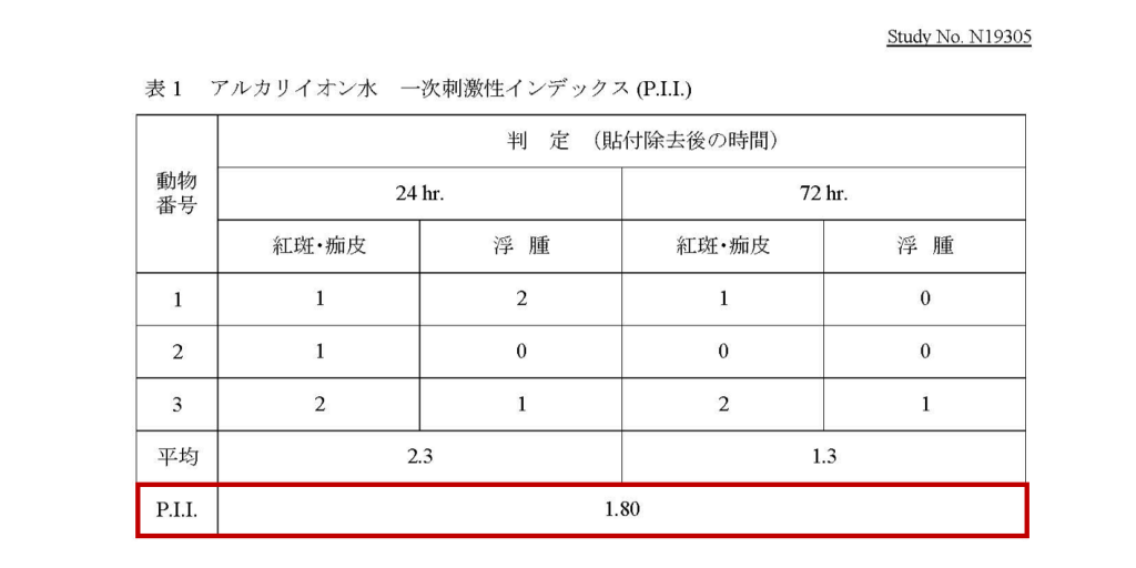 The P.I.I. is 1.80. The evaluation category is "weak irritant.